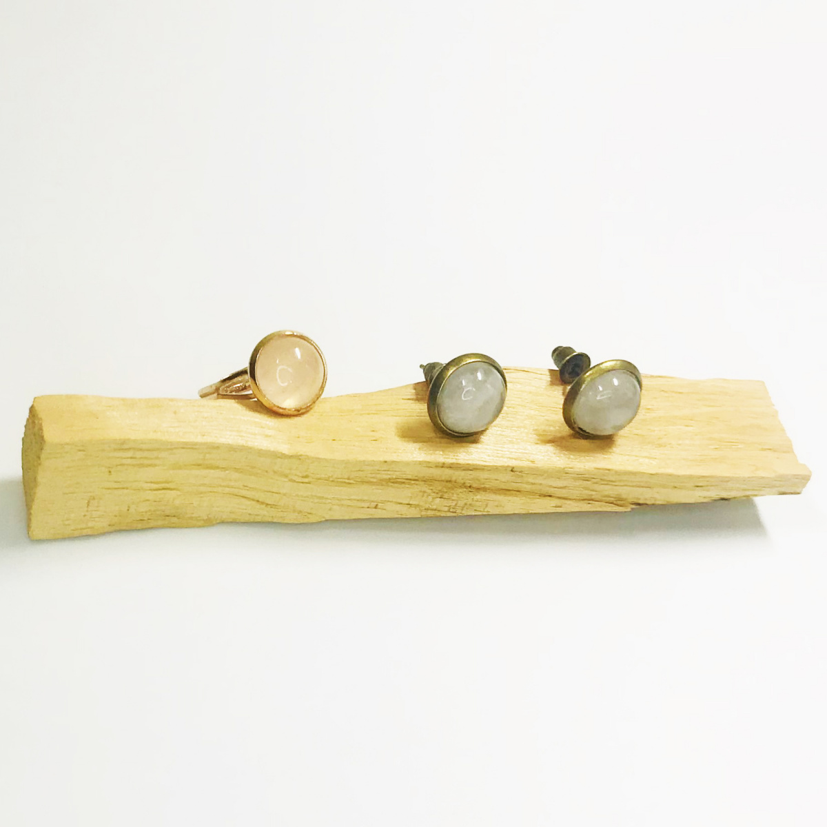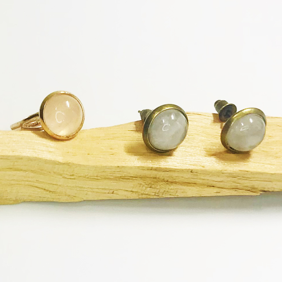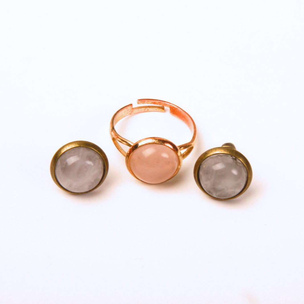 Rózsakvarc fülbevaló-gyűrű