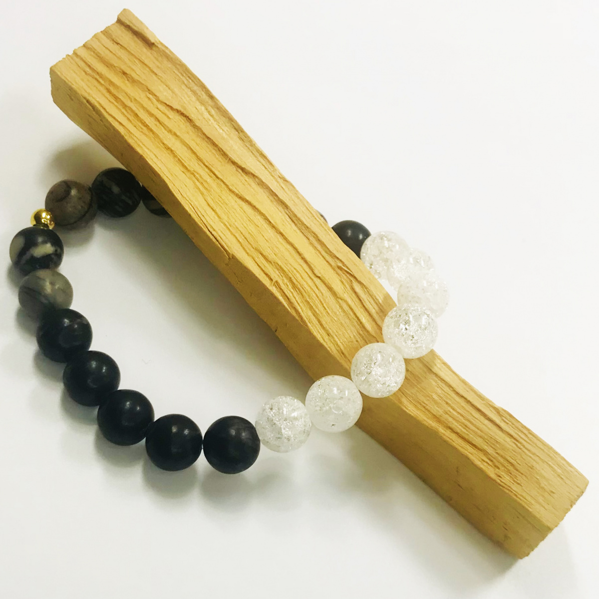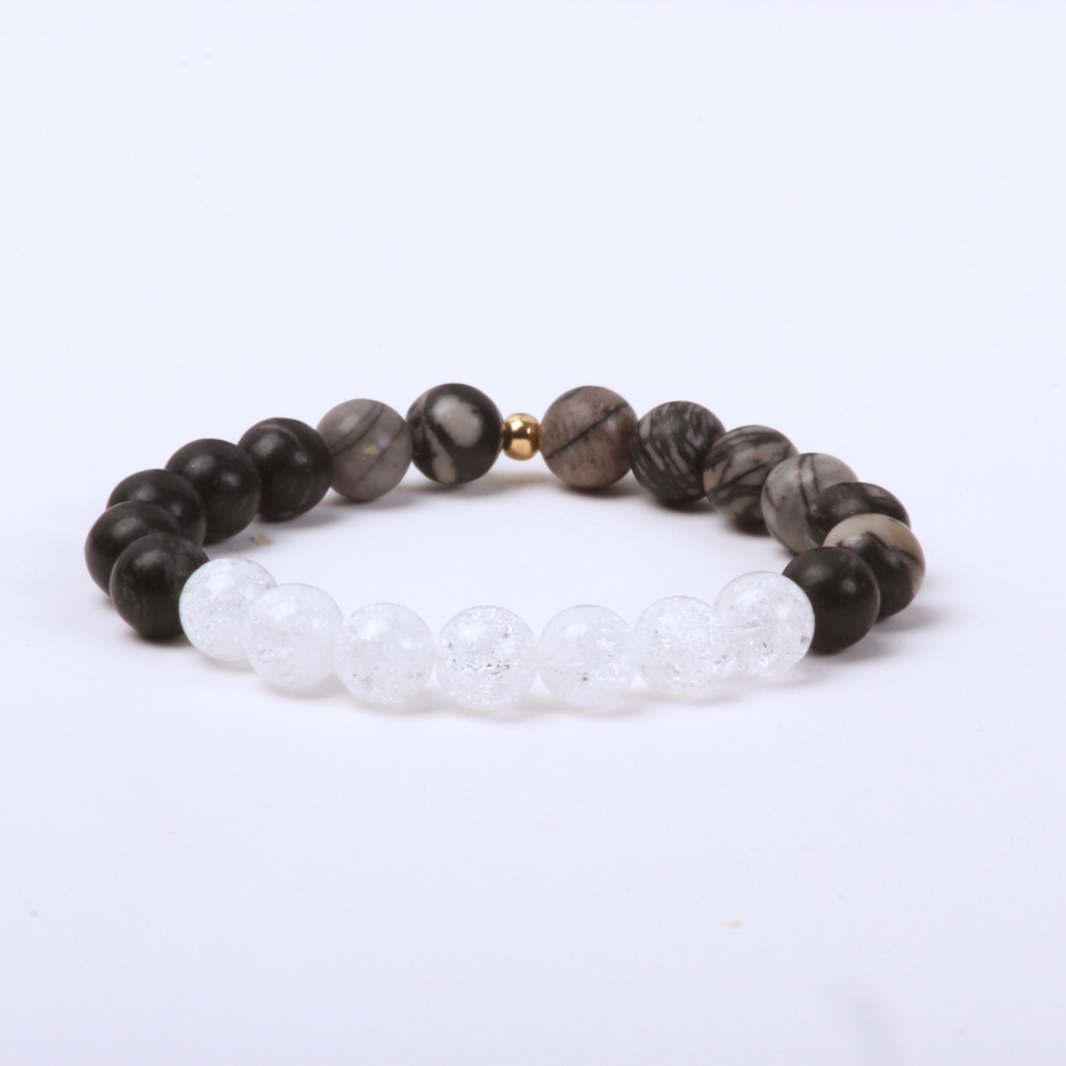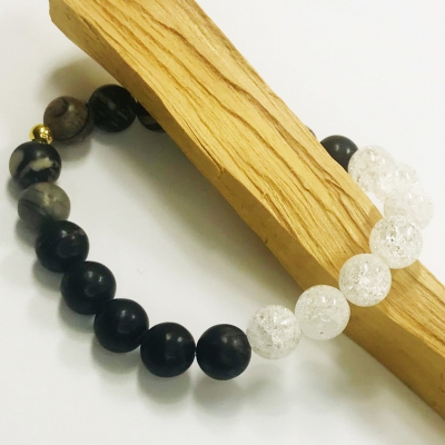 A picasso jáspis segítheti a hála, a teljesség, az együttérzés, a gondoskodás, a nyugalom érzelmi hatását. Gondoskodik a jin-jan energia egyensúlyáról, összehangolhatja a hét fő csakrát. A hegyikristály egyszerre erősíti, védi a többi ásvány erejét, és tisztíthatja a karma magot, a lelket. Ráhangolhat a spirituális útra, mestergyógyító.